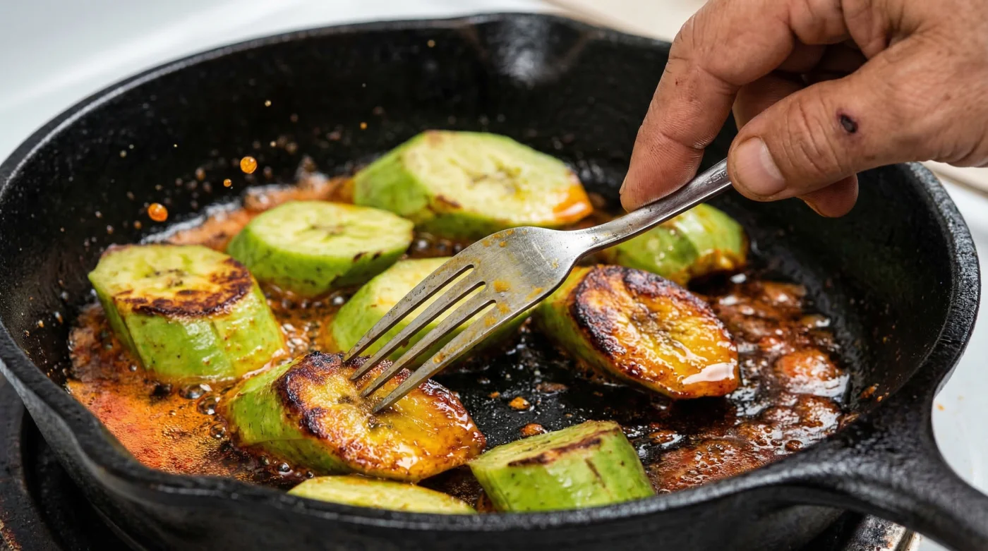 - Symptom: A chalky, dry, and distinctly savoury interior. Cause: Slicing the green plantain too thickly (over 10 millimetres), preventing the thermal energy from penetrating the core before the outside burns.